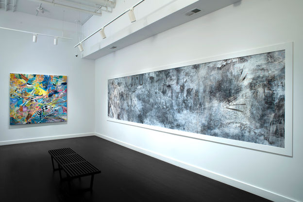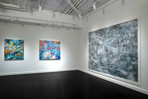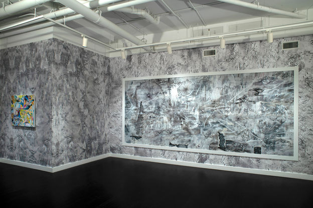 "Like the imaginary maps at the beginning of fantasy novels, Amy Schissel’s world building is vast. Wherever one’s eyes wander, they wander in wonder, resting upon a detail that instantly leads into luminous, ever-expanding, continuous, and promising space. The large-scale drawings combine traditional cartography, illustrated topographical mountains, and cyber mapping systems to create vigorous artworks that span space, time and universes. The painting and drawing processes record physical and fictional journeys of the artist through spaces, imagined and real. The monumental scale and intricate details of Schissel’s drawings invite the viewer into her process. Thousands of repetitive marks show the artists’ hand, drawing out expeditions in a never-ending, fantastical atlas. Whether hypnotized by the soft auras of color amidst primarily black and white surfaces, or the swirling white mist, Amy Schissel keeps us in the palm of her hand as we enter her multiverse"